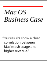 - Provide a template of business value to which creative professionals can add financial information (such as cost versus benefits and return on investment) to produce a business case for Mac OS within their organizations